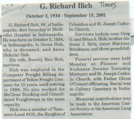 | Survived By | Spouse; mother, Anna (Sedula) Ilich; sons, Greg G. and Brian A. Ilich; brother, Anthony J. Ilich; sister, Maryann Brinkman; 3 grandchildren. |
