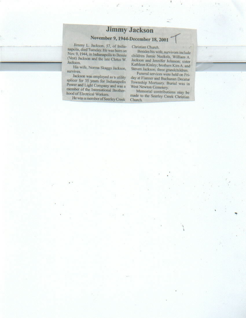| Other | Age 57. Parents: Bessie (Vest) Jackson and Cletus W. Jackson. |
