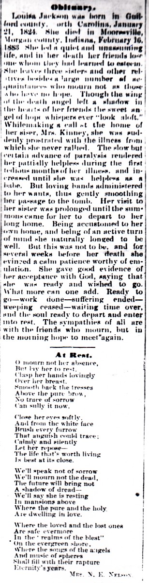 | Obituary Source | Martinsville Republican, Feb. 22, 1883 |
