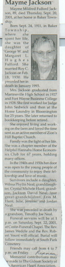 Other Age 89. Preceded in death by spouse; parents, George W. and Margaret L. (Hughes) Fulford; grandson, Timothy Joe Neal.