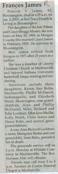 | Other | Age 93. Preceded in death by a son, Alan Richard Lockhart; a sister, Marigrace Battin; and one grandchild, Sean Bolin. |