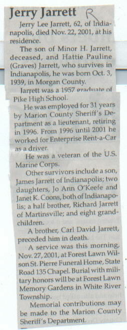 Survived By Mother, Hattie Pauline (Graves) Jarrett; son, James Jarrett; daughters, Jo Ann O Keefe and Janet K. Coons; half-brother, Richard Jarrett; 8 grandchildren.