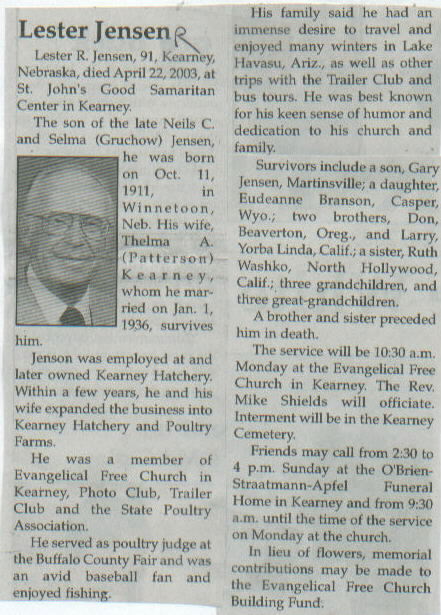 | Other | Age 91. Son of the late Neils C. and Selma (Gruchow) Jensen. |