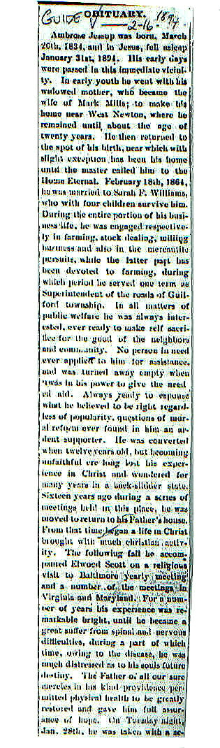 Obituary Source Mooresville Guide, Feb. 16, 1894