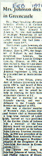 | Survived By | Sons, H. Newman and Philip Johnson; daughter, Eleanor (Mrs. Charles) Carmichael. |