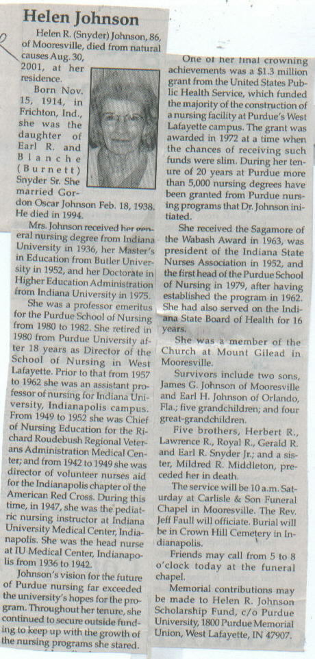 | Other | Preceded in death by spouse; parents, Earl R. and Blanche (Burnett) Snyder, Sr.; brothers, Herbert R., Lawrence R., Royal R., Gerald R., and Earl R. Snyder, Jr.; sister, Mildred R. Middleton. |