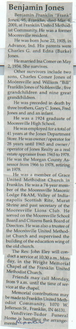 | Other | Age 95. Preceded in death by parents, Charles G. and Edna (Burke) Jones; brothers, Gary C. and Fred Jones, and an infant brother. |