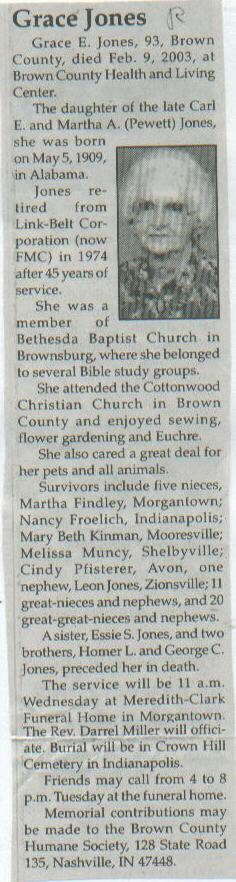 Other A sister, Essie S. Jones, and two brothers, Homer L. and George C. Jones, preceded her in death.