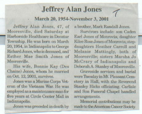 | Other | Age 47. Preceded in death by father, George Richard Jones. US Marine Corps veteran of Vietnam War. |