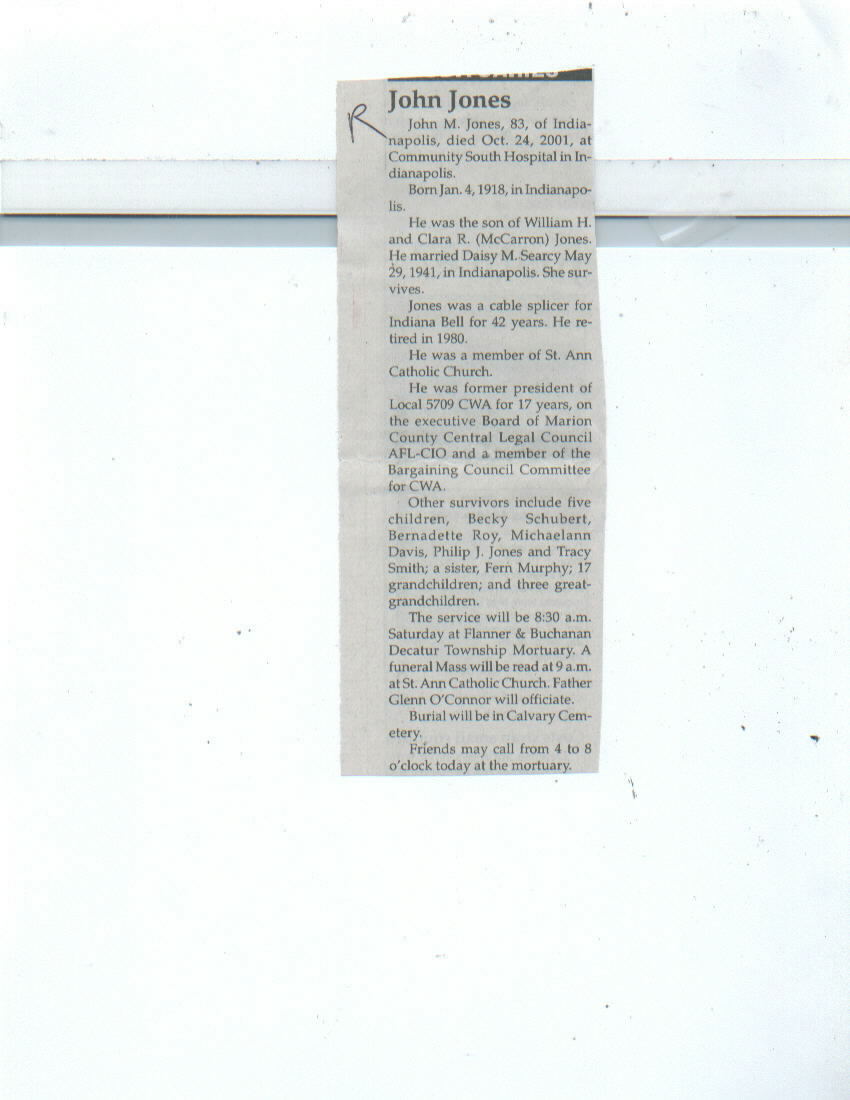 | Other | Preceded in death by parents, William H. and Clara R. (McCarron) Jones. |