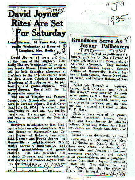 Survived By Sons, Frank, John, and Cebren Joyner; daughters, Mrs. M. L. Hobson and Mrs. V. S. Hadley.