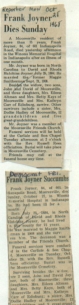 | Obituary Source | Martinsville Reporter, Oct. 28, 1968 |