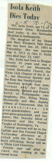 | Survived By | Sons, Norman, Jay, Donald, and Francis Keith; daughters, Mrs. Emory (Wilma) Welch and Mrs. Juanita Allison; sisters, Mrs. Dorothy Silver and Mrs. Norma Vaughn. |