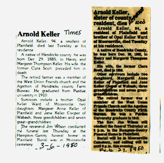 | Survived By | Daughters, Margaret Ann Keller and Jane Keller Cooper. |
