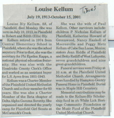 | Survived By | Spouse; children, P. Nicholas Kellum, Katherine Howard, Nancy Haskell, and Peggy Metz Kellum; sisters, Jean Riddle and Betty Ratliff; 7 grandchildren; 9 great-grandchildren. |