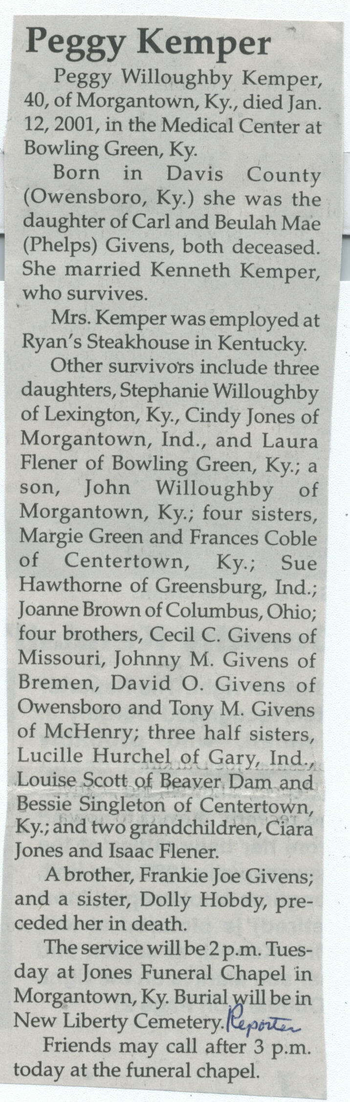 Other Age 40. Preceded in death by parents, Carl and Beulah Mae (Phelps) Givens; brother, Frankie Joe Givens; sister, Dolly Hobdy.