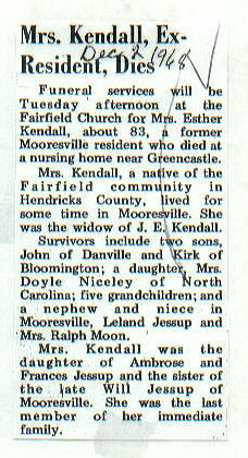 | Survived By | Sons, John and Kirk Kendall; daughter, Mrs. Doyle Nicely. |