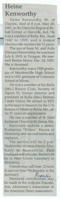 Other Preceded in death by parents, Isaac M. and Arda (Heiney) Kenworthy; spouse.