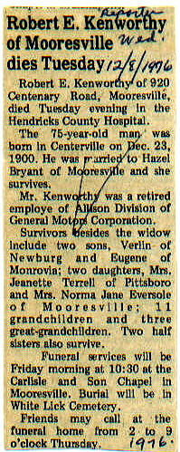 | Survived By | Wife; sons, Verlin and Eugene Kenworthy; daughters, Mrs. Jenette Terrell and Mrs. Norma Jane Eversole. |