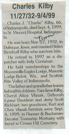 | Obituary Source | Mooresville Times, Sept. 15, 1999 |