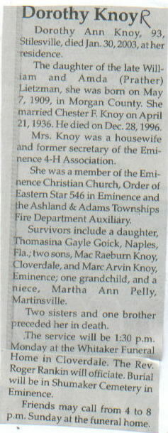 Survived By Daughter, Thomasina Gayle Goick; 2 sons, MacRaeburn Knoy and Marc Arvin Knoy; one grandchild; niece, Martha Ann Pelly.