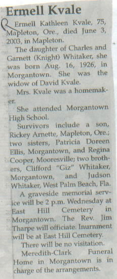 | Other | Daughter of Charles and Garnett (Knight) Whitaker. |