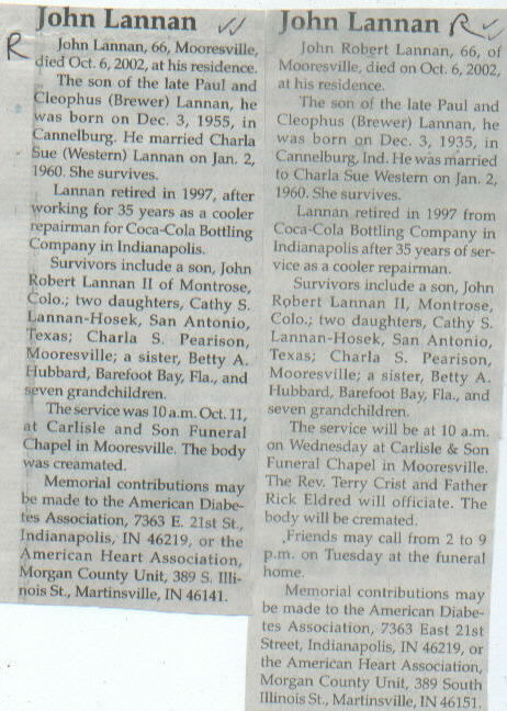 | Survived By | Widow; son, John Robert Lannan II; 2 daughters, Cathy S. Lannan-Hosek and Charla S. Pearison; sister, Betty A. Hubbard; 7 grandchildren. |