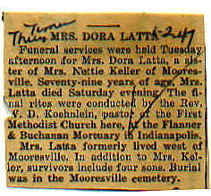 Obituary Source Mooresville Times, Jan. 2, 1947