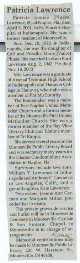 | Survived By | Sons, William T. and Anthony C. Lawrence; granddaughter, Kate Lawrence. |