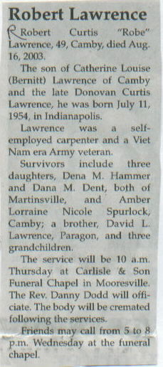 | Survived By | Three daughters, Dena M. Hammer, Dana M. Dent, and Amber Lorraine Nicole Spurlock; brother, David L. Lawrence; 3 grandchildren. |