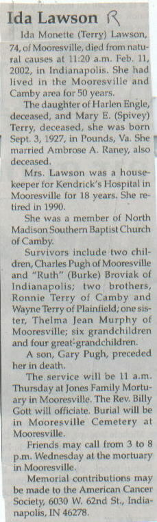 Survived By Two children, Charles Pugh and "Ruth" (Burke) Broviak; 2 brothers, Ronnie Terry and Wayne Terry; sister, Thelma Jean Murphy; 6 grandchildren; 4 great-grandchildren.