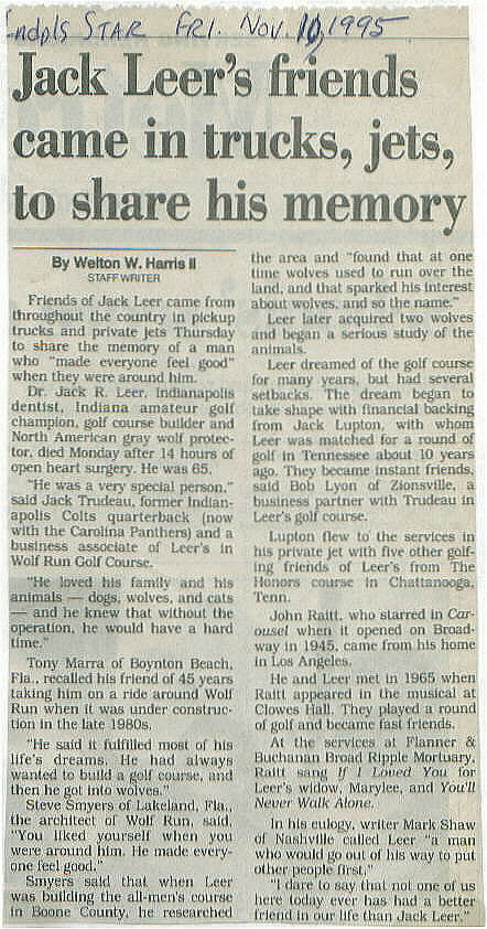 | Other | Age 65. Dentist, amateur golf champion, golf course builder, and protector of animals. |