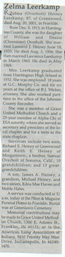 | Survived By | Sons, Richard E. and Keith E. Heiney; brother, Samuel Overholt; 10 grandchildren; 13 great-grandchildren. |