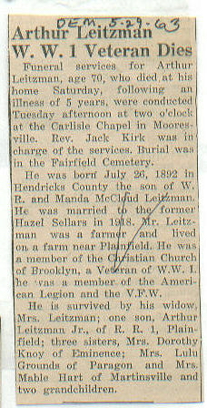 | Other | Age 70. Son of General and Amanda McCloud Leitzman. Veteran of WW I. |