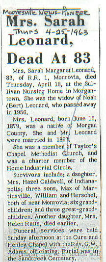 Survived By Sons, Max, William, and Herschel Leonard; daughter, Mrs. Hazel Caldwell.