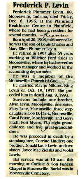 | Survived By | Brother, Alvin "Pete" Levin; sister, Mary Lane. |