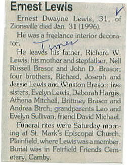 | Survived By | Father, Richard W. Lewis; mother, Nell Russell Brasor; brothers, Richard, Joseph, Jessie Lewis, and Winston Brasor; sisters, Evelyn Lewis, Deborah Hargis, Athena Mitchell, Brittney Brasor, and Andrea Birch. |
