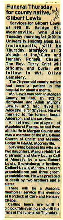 | Survived By | Wife; daughters, Marcia Noblitt and Mary Louise Call; son, Robert Lewis; brother, Delbert Lewis. |