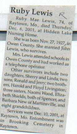 | Survived By | Spouse; daughters, Sherry and Linda; sons, Ronald and Jerry; brothers, Harold and Floyd Livingston; sisters, Naomi Wood, Elizabeth Shields, and Barbara New; 8 grandchildren. |
