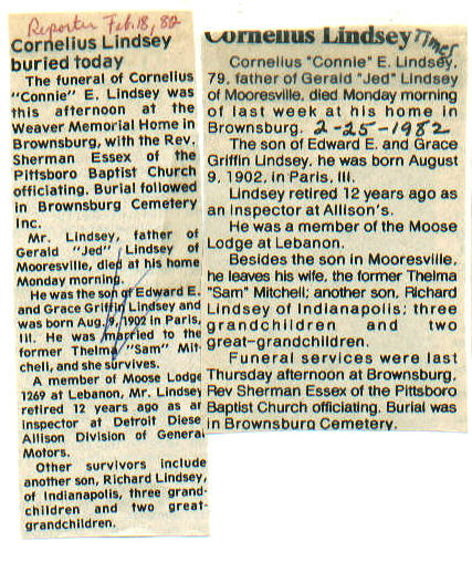 | Survived By | Wife; sons, Gerald "Jed" and Richard Lindsey. |