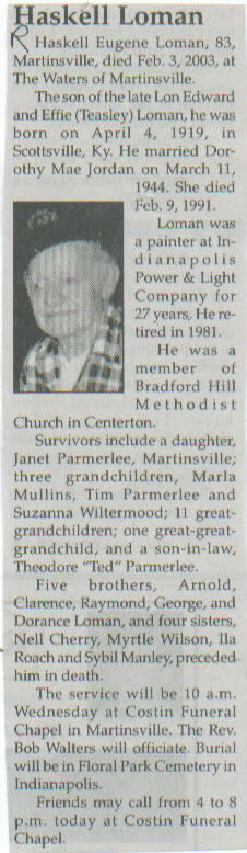 Other Son of the late Lon Edward and Effie (Teasley) Loman. Preceded in death by five brothers, Arnold, Clarence, Raymond, George, and Dorance Loman, and four sisters, Nell Cherry, Myrtle Wilson, Ila Roach, and Sybil Manley.