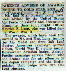 | Other | Lost in action during flight over Shiznoka Honsu, Japan during WW II. Was Radar bombardier with the 20th Air Force. |