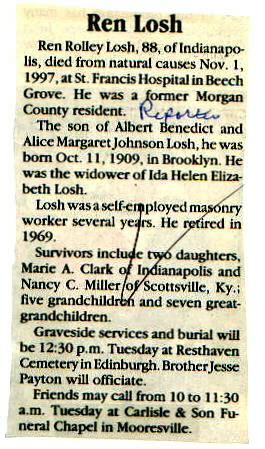 Survived By Daughters, Marie A. Clark and Nancy C. Miller.