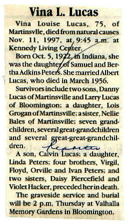 Survived By Sons, Danny and Larry Lucas; daughter, Lois Grogan; sister, Nellie Bales.