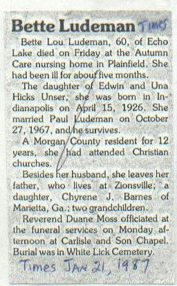 Survived By Husband; father, Edwin Unser; daughter, Chyrene J. Barnes.