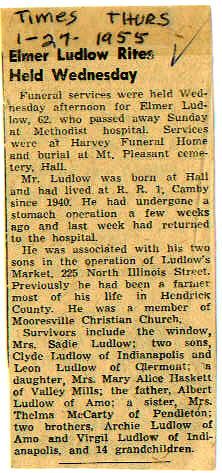 | Survived By | Wife, Sadie; sons, Clyde and Leon Ludlow; daughter, Mary Alice Haskett; father, Albert Ludlow; sister, Mrs. Alfred (Thelma) McCarty; brothers, Archie and Virgil Ludlow. |