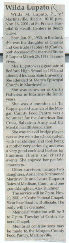 | Other | Age 71. Preceded in death by parents, Charles and Gertrude (Tabler) McCauley. Cremation. |