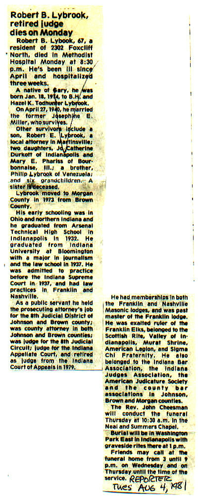 | Survived By | Wife; son, Robert E. Lynbrook; daughters, Jo Catherine Durkott and Mary E. Phariss. |