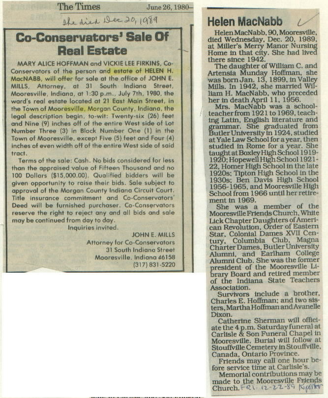 | Other | Age 90. Carlisle Funeral Chapel (Catherine Sherman officiating.) Buried at Stouffville Cemetery in Stouffville, Ontario Province, Canada, where her husband in buried. Died at Miller's Merry Manor; born at Valley Mills. |