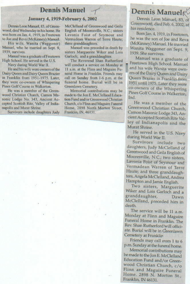 Survived By Widow; 2 daughters, Judy McClelland and Geila English; 2 sisters, Lavonia Foist and Vermadean Warren; 3 granddaughters, Angela McClelland, Andrea Hampton, and Jamie English.